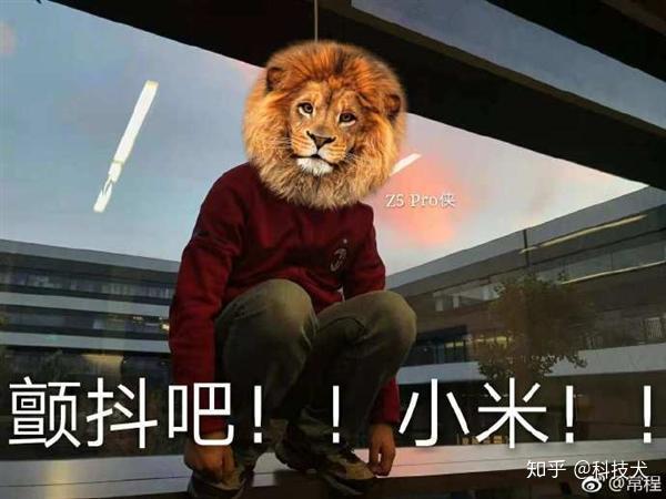 最后,放置了一张“狮子头像”的图片lg折叠手机,并标有“ Z5 Pro Man”,一行大字“晃动它!小米!”