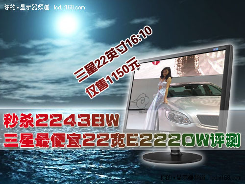 【IT168 评测】近两年来三星显示器中精品辈出,无论是旧绝色中的T220还是新绝色中的P2250W,都让人津津乐道,好评不短,说到最受欢迎的22吋显示器,却并非以上两款,而是2243BW和其升级型号2243BW+,这款显示器以超低的售价而闻名消费者,因此成为三星显示器乃至整个显示器市场中最热销的产品。今天,我们迎来了2243BW+的新一代替换机型E2220W,这款22英寸16:10显示器上市后就以1199元的超低售价震撼整个市场。