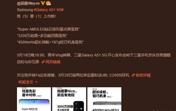 三星最近推出了一款新的5G手机,即三星Galaxy A51,配备了三星Orion 980处理器,8 + 128GB内存组合,屏幕是三星的6.5英寸AMOLED屏幕,刷新率是60HZ,4500MAh电池, 15w快速充电,前置为3200万像素,后置为4800万像素. 这也是京东和三星联合定制的独家机器. 售价为2999元. 这个价格并不便宜,甚至比vivo x30的配置低很多,后者也是三星Orion 980处理器,尤其是其15w快速充电. 此价格可用于15w快速充电的Android手机. 只是三星一家.