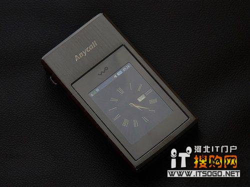 三星B7732的正面采用了金属拉丝面板,在简约的机身上只有“Anycall”和“WO”的标志,体现出这是一款出自三星的W手机。它的外屏尺寸达到了2.2英寸,分辨率为240×320像素,可以显示时钟、待机状态、来电信息等信息。