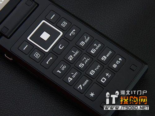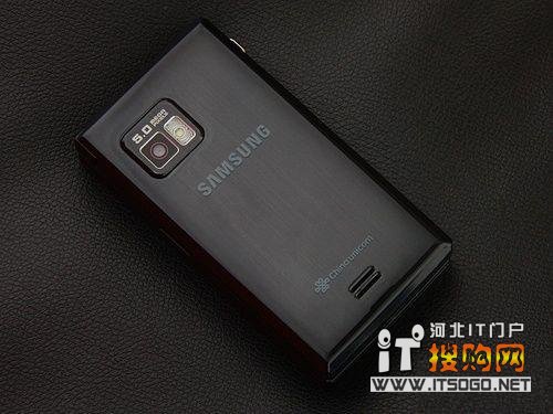 三星B7732的背面同样显得气度不凡,黑色琉璃质感的电池盖显得晶莹通透,手感也非常细腻。作为一款高端手机,三星B7732也采用了500万像素,并配有闪光灯。
