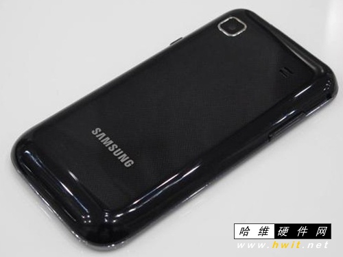 三星I9001的外形和I9000几乎一样,机身纤薄,仅为9.9mm。机身正面也还是一块4.0英寸Super AMOLED材质的电容屏,分辨率为480×800像素,显示效果艳丽。背后仍是一颗500万像素,依旧没有配备补光灯。