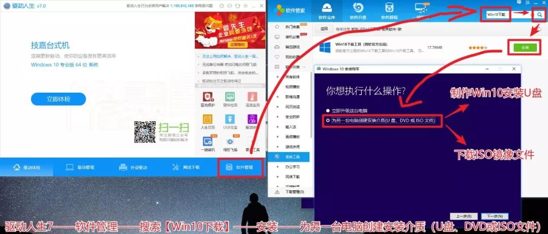 最后,如果要制作Win10安装U盘,则添加驱动程序. 您可以在Drive Life 7-软件管理中搜索[Win10],然后按照提示制作100%有效的Win10安装USB闪存盘(前提是该USB闪存盘必须具有质量杠杆作用).
