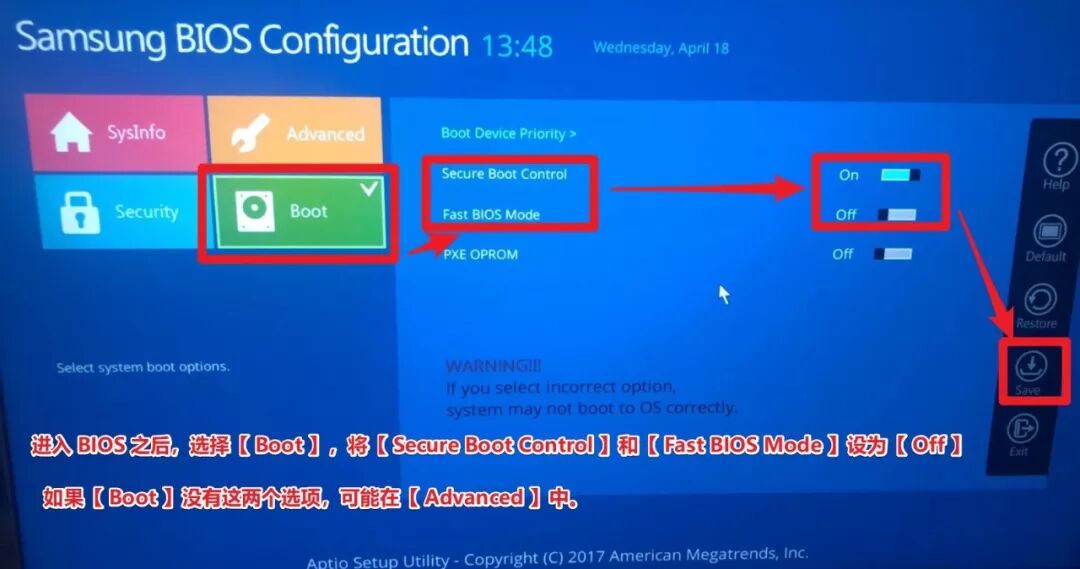 首先,让我们用一个句子来总结一下,进入BIOS后,关闭[安全启动(控制)]和[快速BIOS模式].