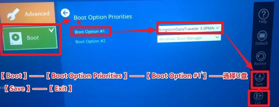 步骤4: 插入U盘,保存(保存)并退出(退出),然后重新启动计算机,然后按键盘上的Del键以返回到[BIOS].