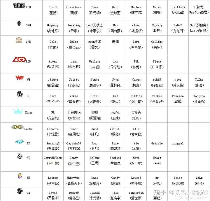 EDG: Koro1,Clearlove,Pawn,Deft和Meiko. S4赛季结束后,Curly退役. S5的最初支持似乎不是meiko,但也可能是Aguang鼠标. 我不记得细节了. 该EDG在当年的MSI上击败了SKT,并赢得了首个MSI冠军.