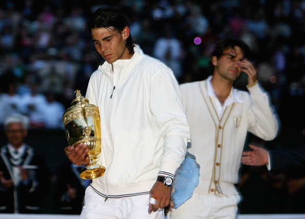 而天王由盛转衰的转折点也发生在温网,2008 年费德勒没有意外地输掉了法网,两周过后就是温布尔顿,在这里他已经拿下了五连冠,这里是他的霸权开始的地方,是他的。网球在草地上的弹跳低而且球速快,与法网的红土是两个相反的极端,从 05 到 07 年,人们已经习惯了法网属于纳达尔,温网属于费德勒。但这次,纳达尔要开创新的历史。