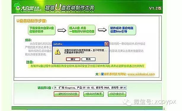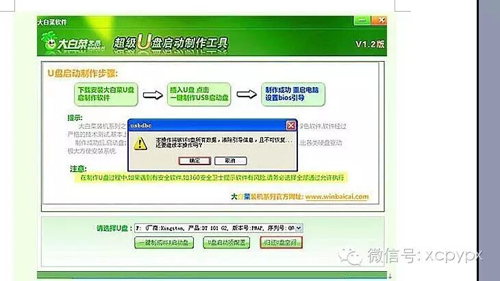 1. 在制作大白菜USB启动盘之前,请备份USB闪存驱动器上的有用数据. 最好完全格式化USB闪存驱动器.