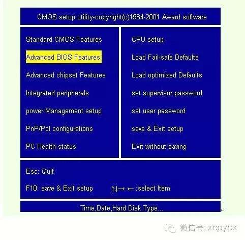 (也许有些主机不是DEL,有些是F2或F1. 请按照界面提示输入),选择BIOS FEATURES SETUP,然后设置Boot Sequence(启动顺序)