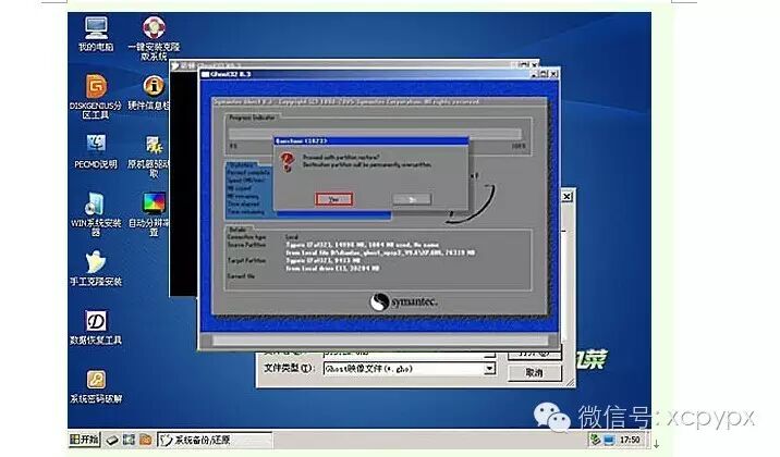 一切正常后,将弹出一个对话框,询问您是否要将指定的GHO环境映像还原到计算机的C驱动器,只需单击“是”即可.