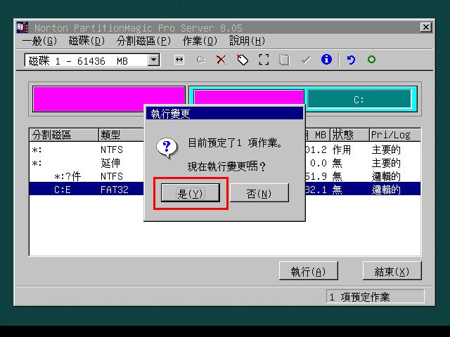 6. 点击“执行”后,会弹出一个提示窗口,我们可以点击“是(Y)”按钮;如下图所示: