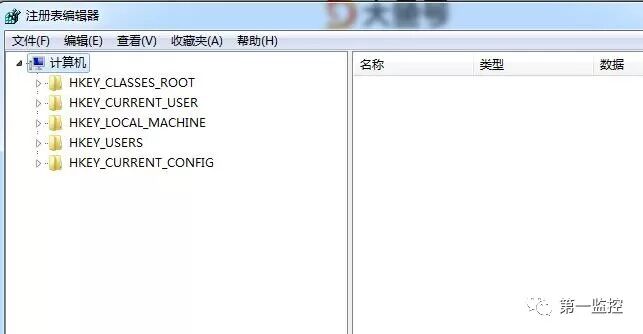 这将打开注册表编辑器,如图所示: