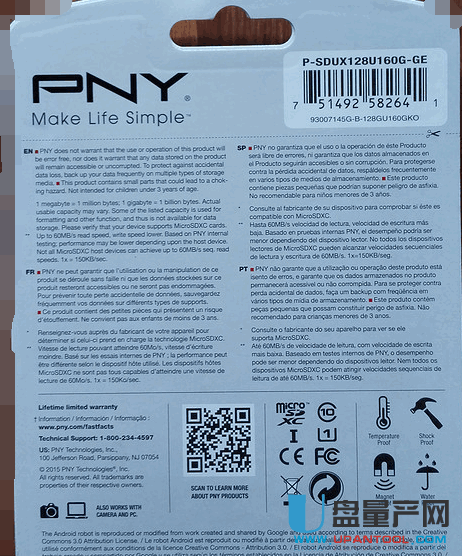 PNY 128G SD卡背面