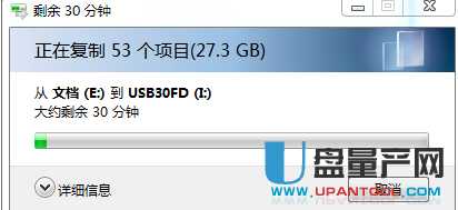 在使用中,直接大文件COPY方法也用于将大文件复制到U盘中,并直接输入27.3G大文件,开始于10:38,结束于11:13. 需要35分钟,转换为13.31M / S.