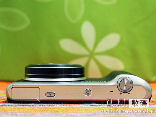 三星Galaxy Camera 2的机身上基本没有任何多余的物理按键,仅有的电源键、闪光灯开关以及变焦拨杆均设计在机身顶部,而大部分操作功能均可以通过三星Galaxy Camera 2的触摸屏幕来完成。