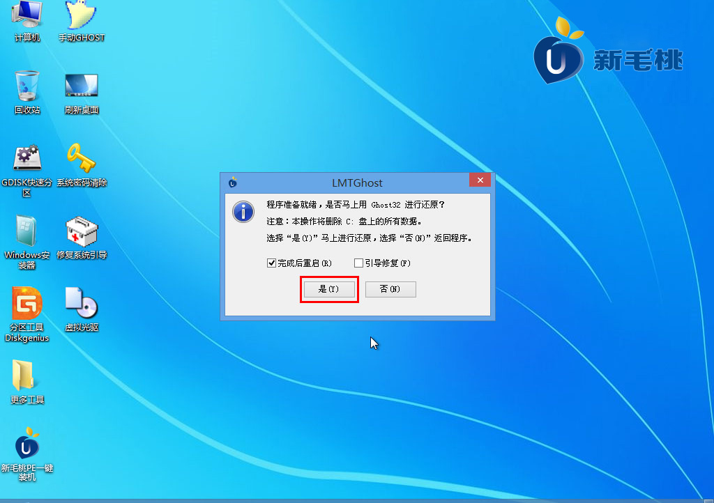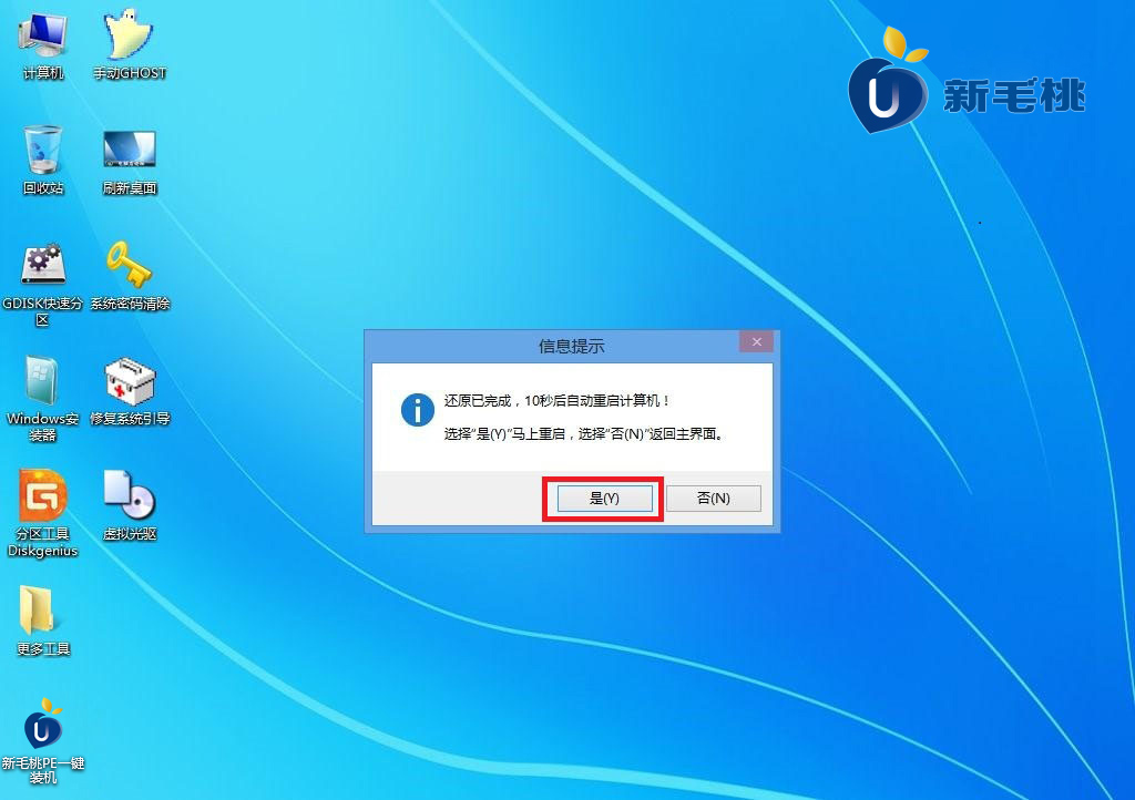 5. 该过程完成后,将弹出计算机重新启动提示. 我们可以单击“是(Y)”以立即重新启动计算机,并继续后续的系统安装步骤. 如下图所示:
