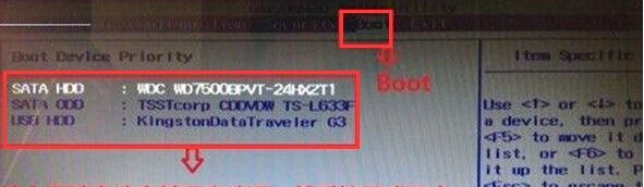 然后使用键盘上的箭头键选择启动项.
