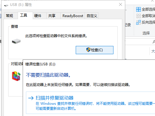 4. 尝试使用“属性”-“工具”-“检查”进行修复,但仍然提示写保护,无法继续: