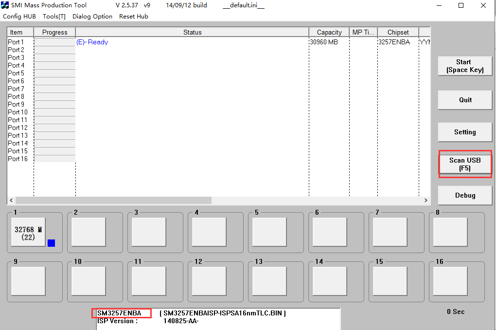 打开批量生产工具,然后选择“刷新”,您可以看到您的USB闪存驱动器信息: