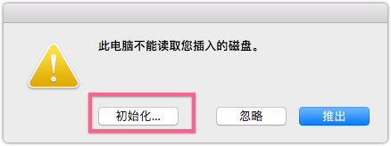 它可能是Windows下格式化的磁盘,Mac无法识别的格式或磁盘本身已损坏. 只需单击[Initialize ...],打开“磁盘工具”即可擦除并创建新格式.