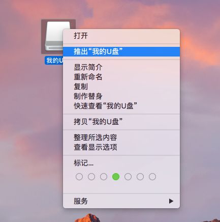 在桌面上,选择磁盘,右键单击“退出”,然后单击快捷键⌘E.