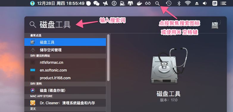 当然,最方便的方法是使用Spotlight(现在重命名为“焦点搜索”). 您可以点击菜单栏的右上角
