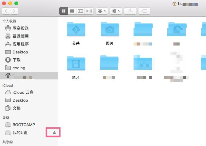 或在Finder左侧的设备项中找到外部磁盘,单击背面的弹出图标.