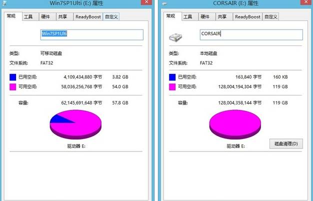 左侧和右侧分别是64GB / 128GB USB闪存驱动器属性