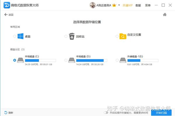 3、选择“原始数据文件存储位置”,可以直接选择意外删除磁盘的相应文件,例如,如果要还原意外删除的桌面文件,则可以直接选择相应的“桌面”。