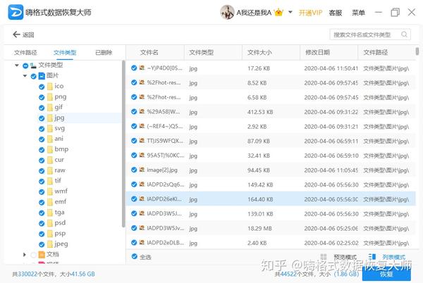 5、扫描结束后,您可以根据文件类型或文件路径依次选择我们需要还原的文件,然后单击下面的“还原”按钮以检索丢失的文件。