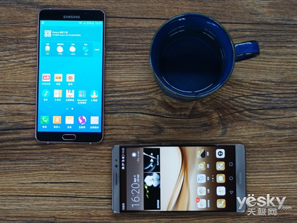 同为6英寸屏幕的三星A9华为Mate 8外形对比(左A9,右Mate 8)