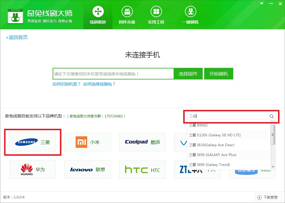 三星I759手机变砖了怎么办?对于经常刷机的安卓玩家来说,碰到刷机失败导致三星I759手机无法启动甚至无法进入recovery都是在所难免的事,这个时候我们就需要用到奇兔线刷大师线刷救砖功能了,它能轻松实现三星I759一键救砖。奇兔线刷大师救砖是一款新的救砖软件,大家用奇兔线刷大师救砖功能就能把自己砖头机救活了。现在已经支持了小米、三星等品牌机型的一键救砖,其他机型陆续支持中。三星I759怎么一键救砖呢?下面跟着奇兔ROM市场小编一起来看看三星I759一键救砖教程吧,三星I759一键救砖教程的具体操作步骤如下: