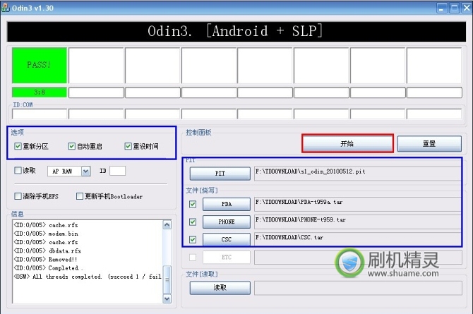 ----「运行解锁工具包中的Odin3 v1.30.exe」