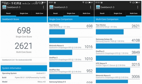 ▲魅蓝3跑分(测试软件:Geekbench3)