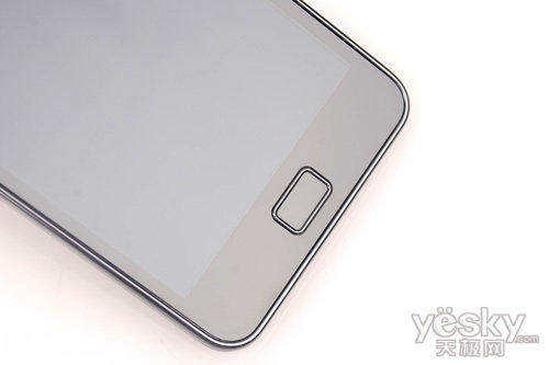从正面来看,三星GALAXY SII显得比较大气,其机身四角也恰到好处的做了圆润处理,看起来并不显得呆板。机身正面除了一块4.3英寸的触摸屏之外,在屏幕的上方为传统的听筒以及一枚200万像素的前置。底部则为三星智能机上常见的三颗标准按键,包括中间的物理HOME键和两边的虚拟功能键与返回键。