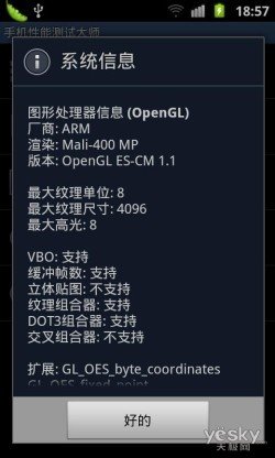 而猎户座双核处理器所集成的Mali-400图像处理引擎,则是世界上第一个符合OpenGL ES 2.0的多核GPU,可提供卓越的二维和三维加速性能,最高可扩展至1080p分辨率。不过从其跑分成绩来看,并没有达到Tegra 2的GeForce ULP处理器引擎的水平,只有59.7分,但是凭借1.2GHz双核CPU的带动,玩大型3D游戏也是完全没有问题的。