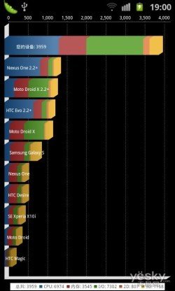 通过以上的跑分我们看到三星GALAXY SII竟然达到了3959分,这比一般单核手机的1000分左右要高出不少,而且对比同为双核手机的摩托罗拉Atrix 4G的2800多分的成绩也高出1000多分,足以见其处理能力的强悍。