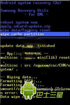 1、首先双清系统。先关机。然后依次按住三星Galaxy Ace/S5820/S5830/S5838的Home键+电源键,依次按住,不要松开,直到屏幕显示三星LOGO再放手,这时进入Recovery模式;