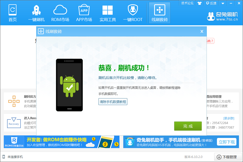 三星A7009 (Galaxy A7 电信版)一键救砖教程到这里就全部结束了,是不是很简单呢!奇兔刷机为方便机友玩机,后期还会继续支持更多机型一键救砖,用户再也不用担心手机变砖,奇兔刷机线刷救砖功能一键搞定。希望奇兔ROM市场小编分享的这篇三星A7009 (Galaxy A7 电信版)一键救砖教程对大家有所帮助。更多三星A7009 (Galaxy A7 电信版)救砖、线刷包,请关注奇兔刷机或奇兔ROM市场获取!