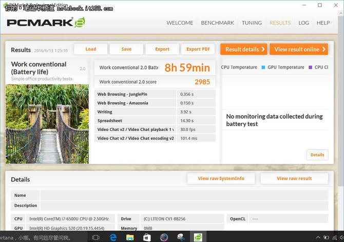 最后我们用PCMark 8对该机的续航能力做了测试。