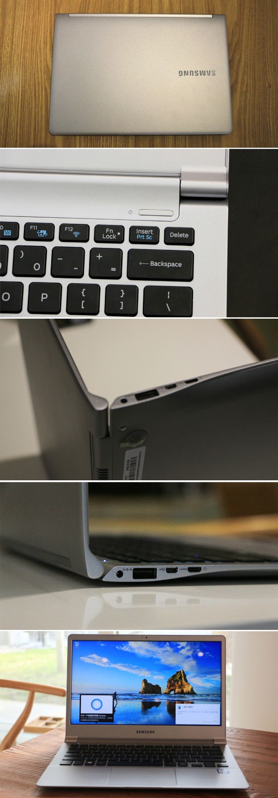 另外Notebook 9 900X3L完全采用窄边框设计,看起来非常优雅大气。13.3英寸相对较小的屏幕也不好产生视觉压抑感。并且感觉应该是窄屏幕的缘故,整个机身拿在手里感觉比类似产品小了一些,便携性提高的同时还用种玲珑剔透的美感。