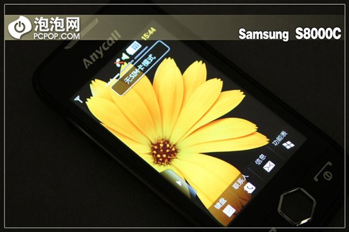 三星S8000C的机身设计非常靓丽,而下面我们就来细节化的点评一下该机的正面外观。三星S8000C配备了一块可视面积高达3.1英寸的AMOLED屏幕。AMOLED材质相比于我们经常看到的TFT材质来说,色彩更加的艳丽,明亮度也更高,而且由于AMOLED屏幕无需TFT材质屏幕必须的背光面板,AMOLED屏幕要比TFT纤薄30%左右。