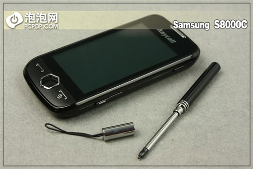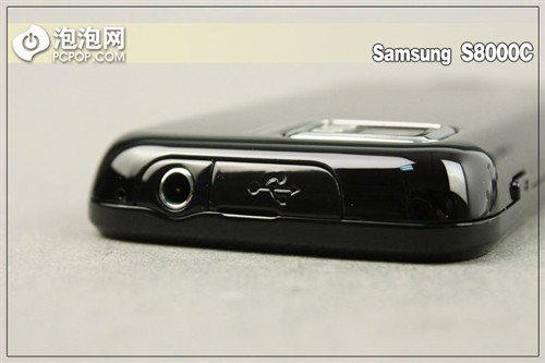 三星S8000C的上方为该机带有保护盖的micro USB接口,旁边则是3.5mm耳机接口,方便使用者更换耳机。三星S8000C也同三星大多数全触控手机一样,并没有在机身上设置手写机插槽,而是采用的外挂式挂绳类型的手写笔。