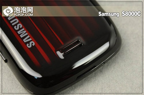 三星S8000C的整机采用了钢琴烤漆面料,而后面更是加上了一层金属镭射面板,非常的炫目,红色带状装饰条会根据光线的不同而反射不同的光泽度,绝对的“夜店女王”级别炫目程度。