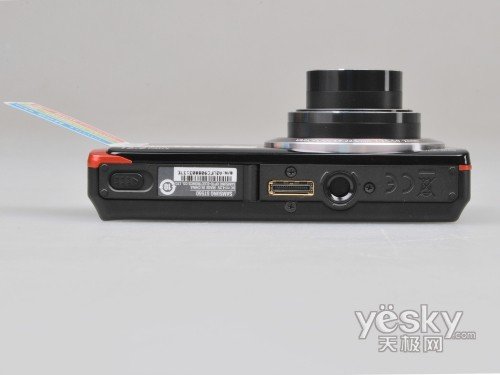 在相机的机身底侧设有充电端口,电池、内存卡的收纳部分,以及三脚架接口。三脚架接口由塑料材料制作而成,因此如果频繁连接三脚架,很有可能造成磨损等问题。