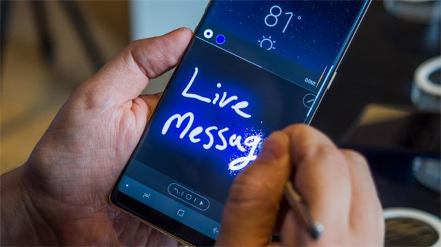 Live Message功能可让你将你的涂鸦作为GIF存储,可以在任何照片背景下创建涂鸦记录,并可通过短信、Facebook、Twitter、WhatsApp或任何其他应用程序进行分享。在Note 8上,用户可以从Air Command导航条创建一条直播消息(将S笔从手机中取出时,可以看到)以及从键盘上按住自定义键并找到“Live Message”选项。