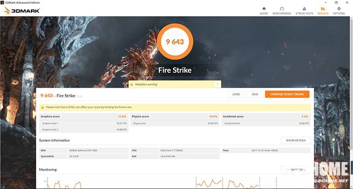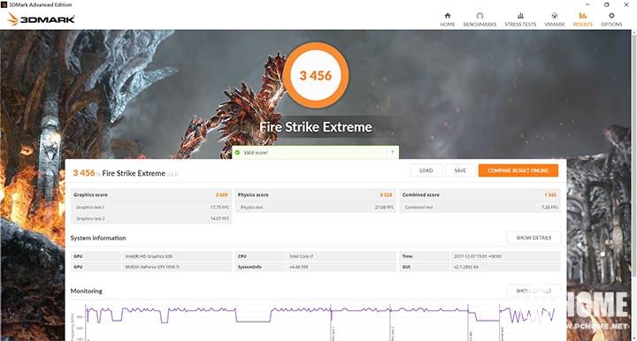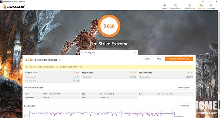 3DMARK Fire Strike测试(GTX 1050Ti 4G)
