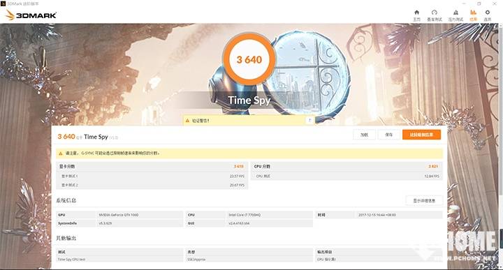 笔者还选择了Fire Strike Extreme和Time Spy两项测试,这两项的分数次要为了衡量GTX 1060在支持DX11、DX12两款游戏软件时的功能表现,前者为测试GTX 1060支持DX11游戏时基准功能,后者为测试GTX 1060支持DX12游戏时的基准功能。从结果来看,GTX 1060的Fire Strike Extreme跑分为5018,Time Spy分数为3640。目前主流游戏都还停留在DX11阶段,所以GTX 1060运转支持DX11的游戏绰绰不足。