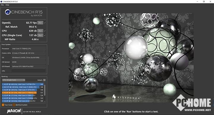 CINEBENCH测试结果方面,其多核得分为639cb,单核得分为137cb;OpenGL跑分为88.7fps,全体来看i7 7700HQ的分数非常可观,证明S5AM的处理器功能强劲。