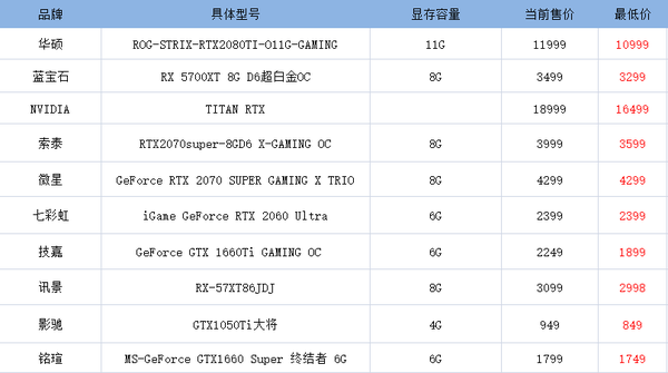 4. 推荐的显卡(每期十个型号)